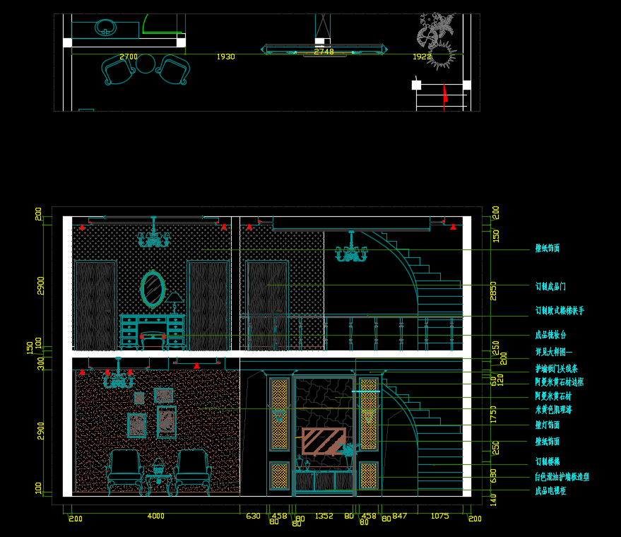 • 两层别墅室内装修施工图纸(含效果图)