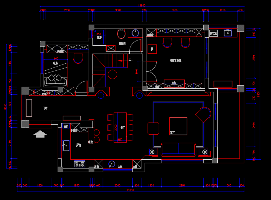 • 200㎡二层别墅室内装修施工图纸(含效果图、3D模型)