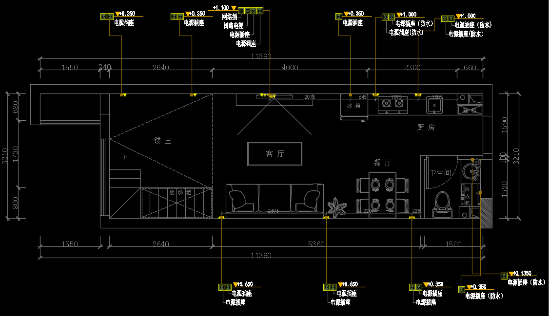 一居室复式公寓室内装修施工图纸包括了原始建筑图、一楼平面布置图、楼梯定位图、楼板新建图、一楼墙体定位图、一楼地板材质图、一楼天花布置图、一楼灯具定位图、一楼插座定位图、一楼电路布置图、一楼插座定位图、一楼插座定位图、二楼平面布置图、厨房立面图、卫生间过道立面图、客厅立面图、卫生间立面图、二楼卫生间立面图、卧室立面图等。