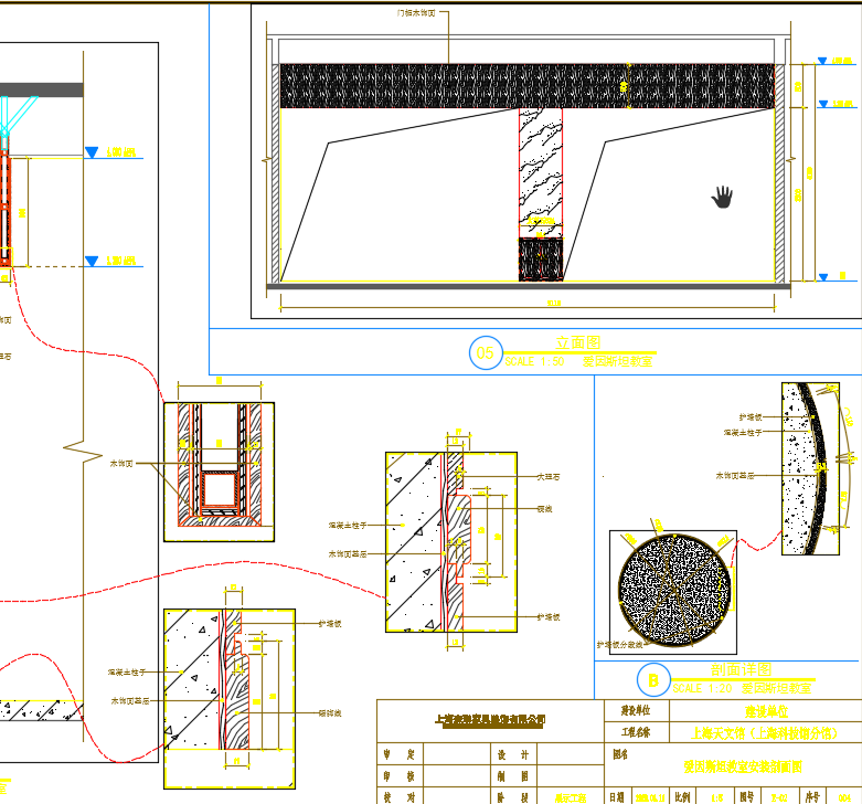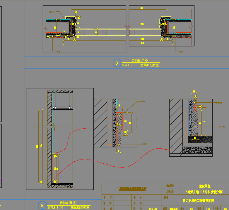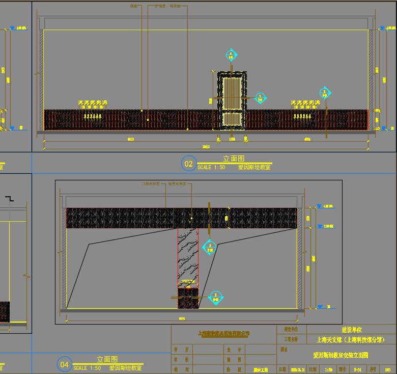门套、护墙板节点详图包括基层平面测量尺寸、教室安装尺寸平面图、教室安装立面图、教室安装剖面图、教室安装剖面图等