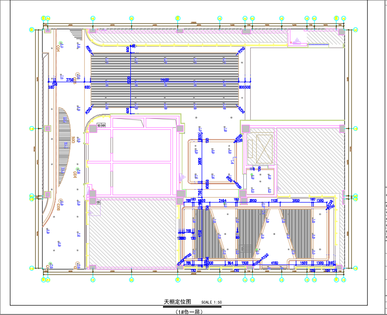 公共区域办公楼建筑施工图纸包括:4#负一层内廊平面布置图、4#负一层内廊完成面尺寸图、4#负一层内廊地面铺装图、4#负一层内廊综合天棚图、4#负一层内廊天棚定位图I、4#负一层内廊灯具定位图等