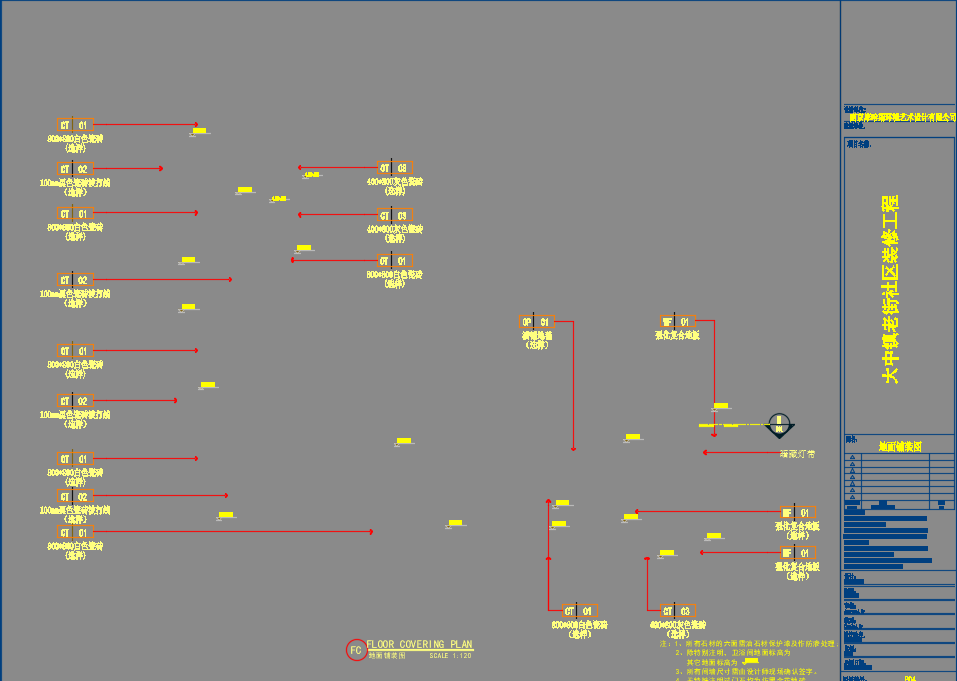 现代风社区办公室装修全套施工图包括:原始平面图、隔墙定位图、平面布置图、地面铺装图、天花布置图、天花尺寸图、灯具定位图、立面索引图、入口立面图、警务室立面图、图书室立面图过道立面图等等